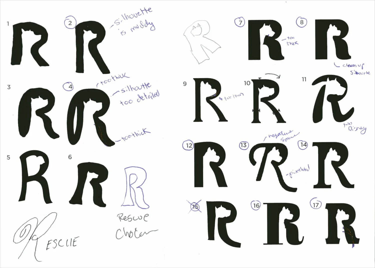 I envisioned a simple, sleek typographic logo. But how could I fit a dog into a word?