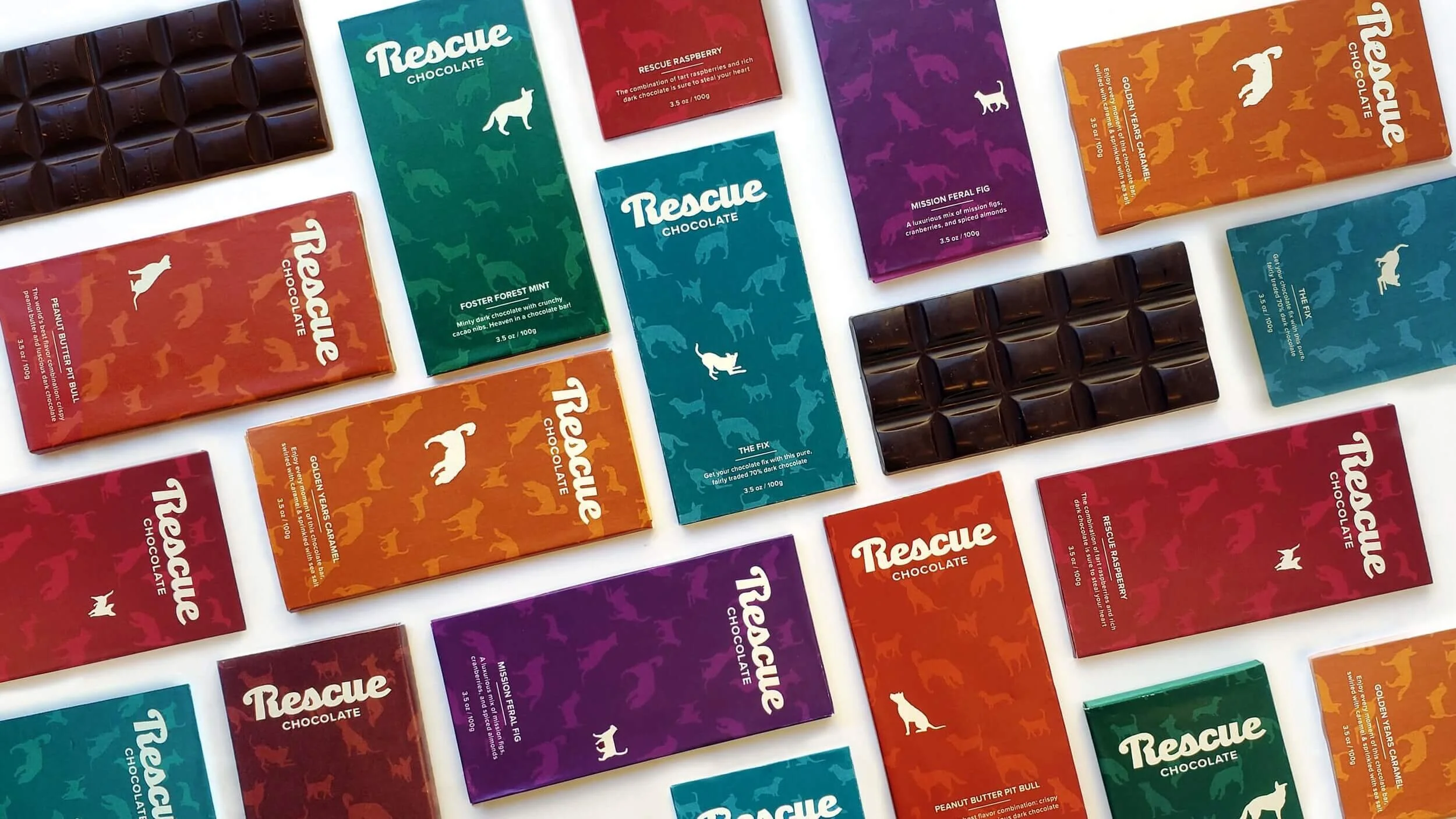 The goal of this project was to position Rescue Chocolate as a luxury product and maintain the brand’s cheerful tone.